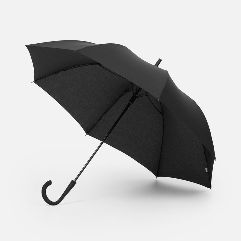 Современная модель зонта-трости с эргономичной ручкой, каркасом из стеклопластика и увеличенным размером купола.