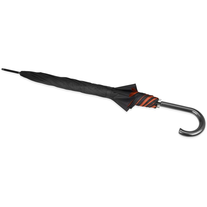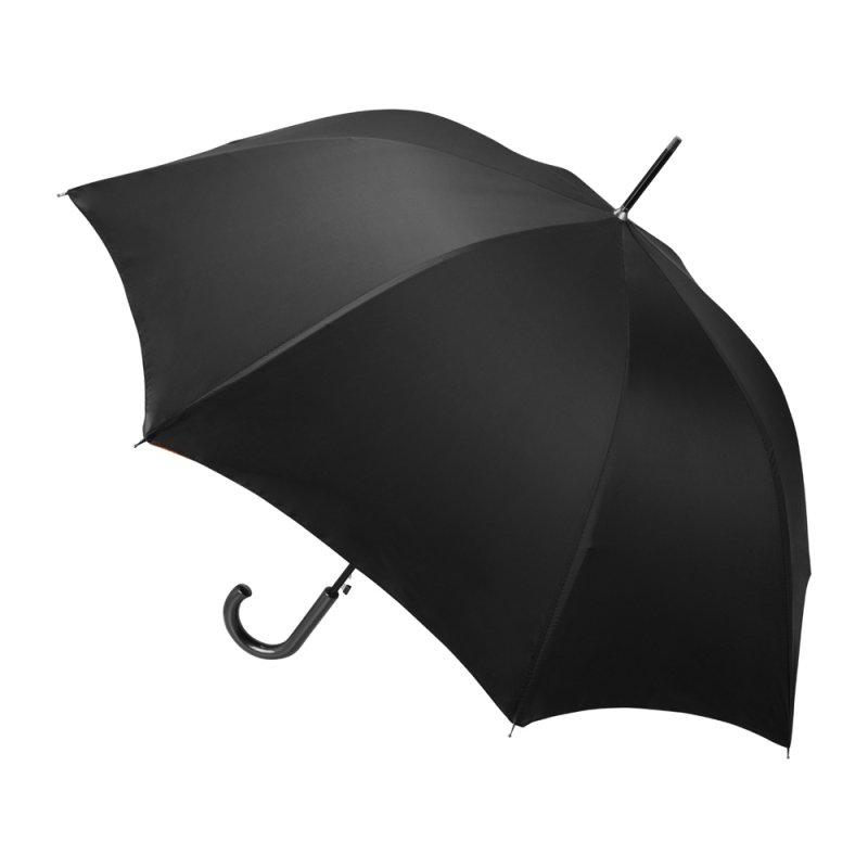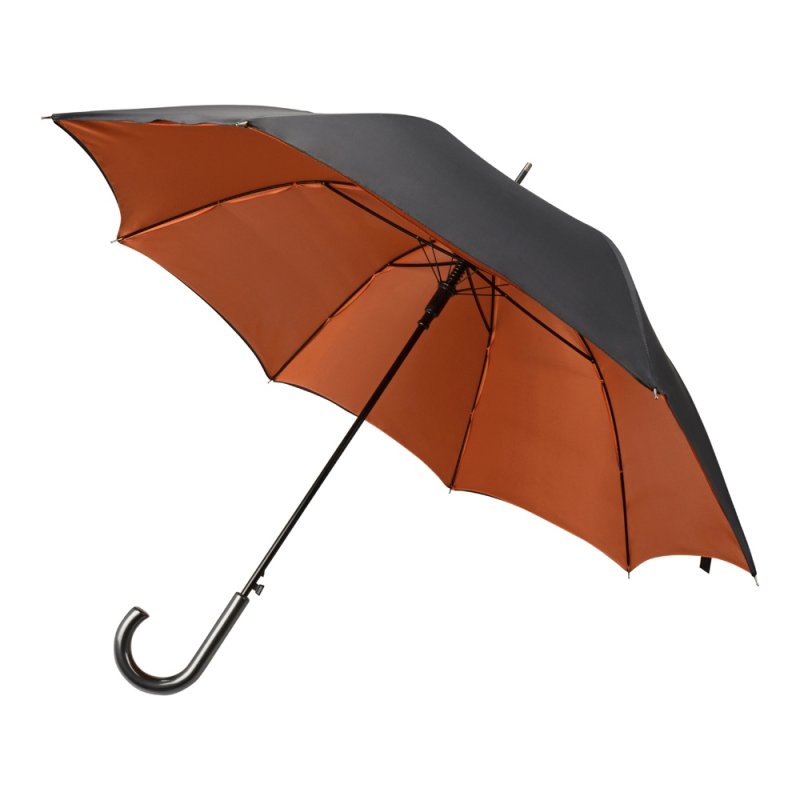 Интересный двухцветный зонт-трость спасет вас от дождя и легкого снега. Внешняя поверхность купола окрашена в черный цвет, а внутренняя имеет яркий, насыщенный оттенок, что непременно привлечет внимание. На купол зонта можно нанести логотип.