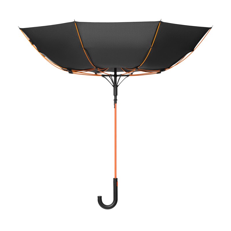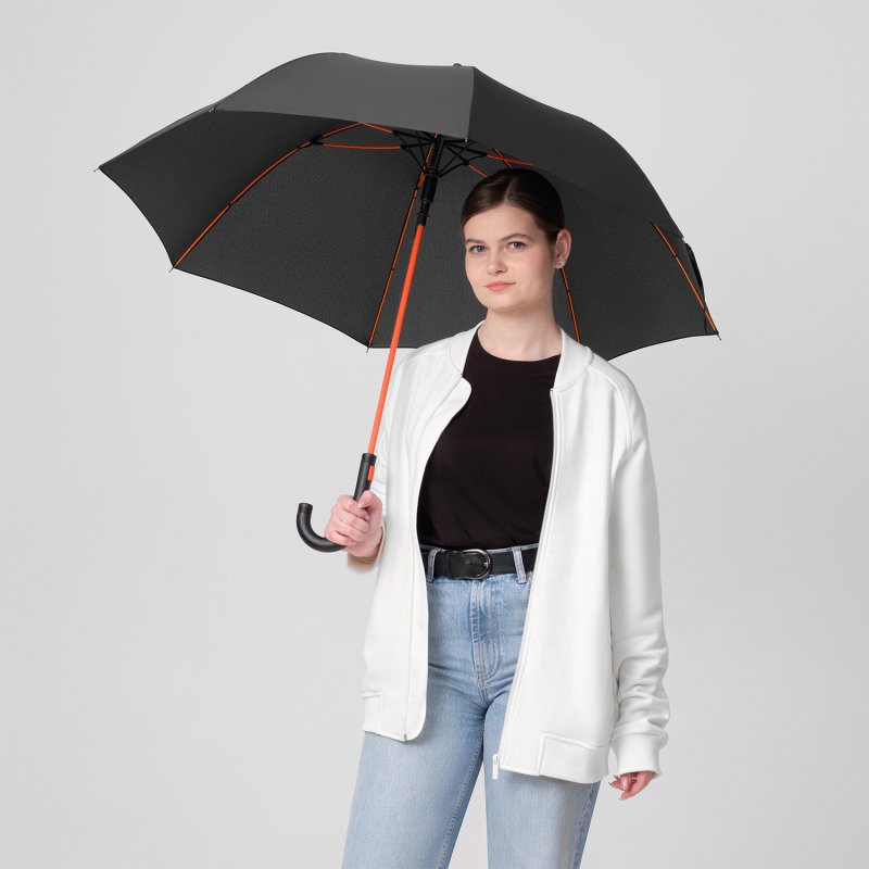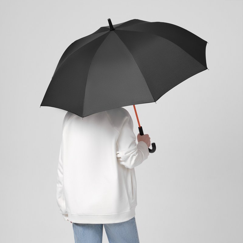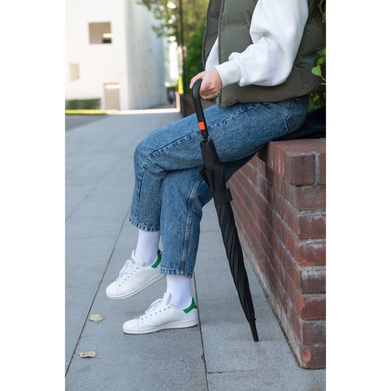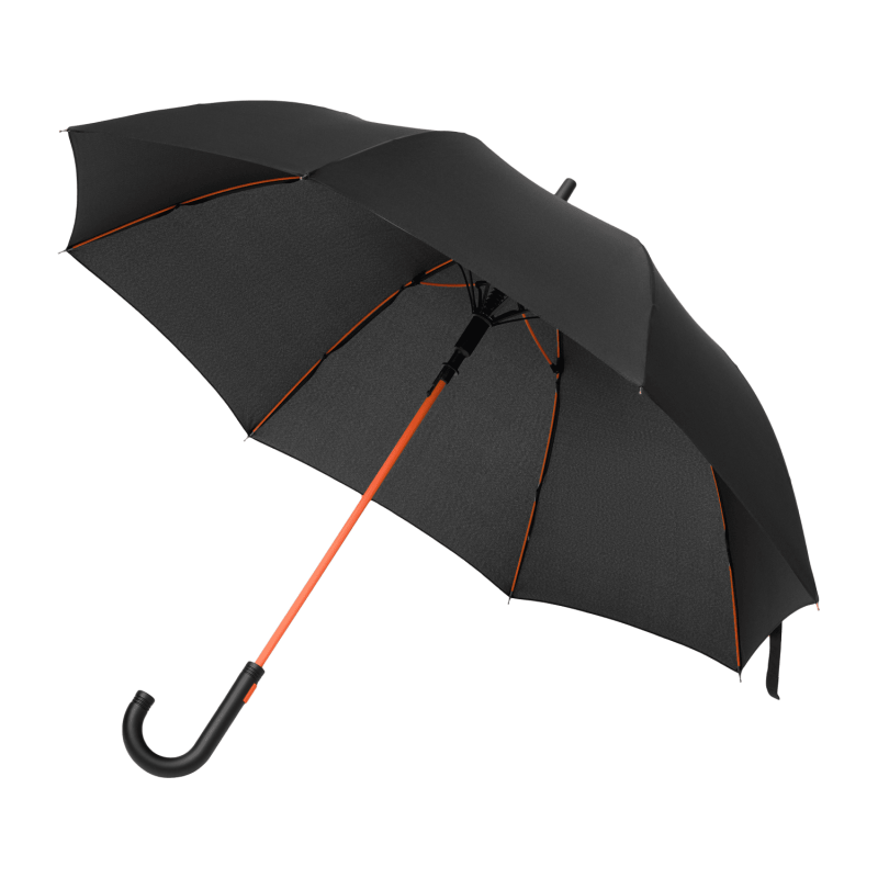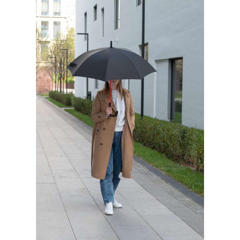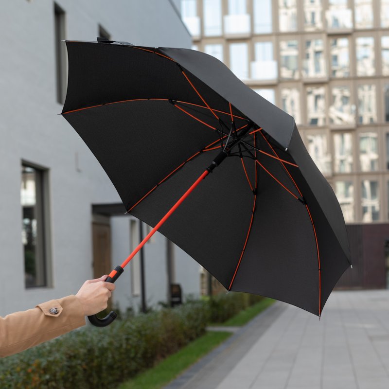 Полуавтоматический зонт быстро раскрывается при нажатии на кнопку. Контрастные цветные спицы окрашены в тон трости и кнопки на ручке. Зонт оснащен гибкими спицами с конструкцией антиветер, которая защищает зонт от поломок при резких порывах ветра. PU-покрытие на ручке зонта обеспечивает комфортное и долговечное использование аксессуара: оно устойчиво к истиранию, не скользит в руке и не становится липким.