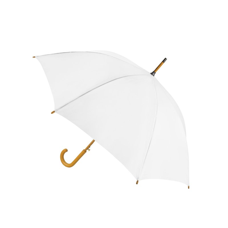Полуавтоматический зонт-трость с деревянной ручкой выполнен из качественных материалов и устойчив к сильным порывам ветра. Яркие, сочные цвета в ассортименте.