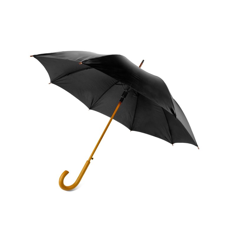 Полуавтоматический зонт-трость с деревянной ручкой выполнен из качественных материалов и устойчив к сильным порывам ветра. Яркие, сочные цвета в ассортименте.