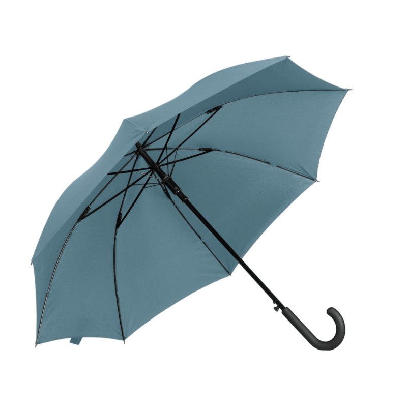 Купол зонта-трости выполнен из переработанного пластика. На ручке зонта расположена кнопка автоматического открытия. Гибкие спицы из стекловолокна делают зонт стойким к порывам ветра. Удобная ручка софт тач. Фиксирующая купол застежка на липучке шириной 3 см - дополнительная опция для нанесения вашего логотипа.