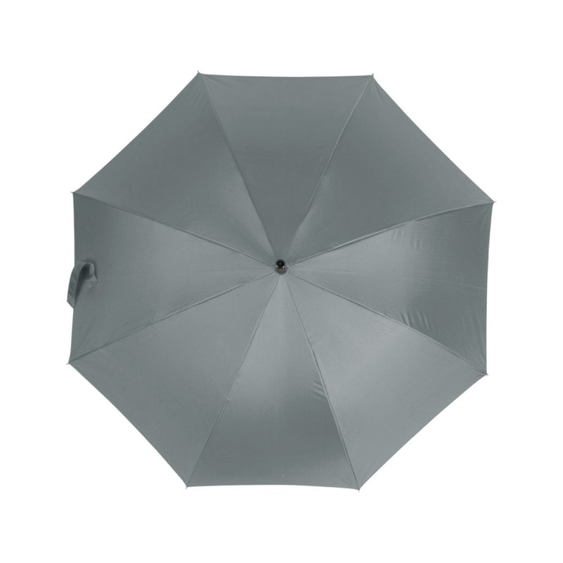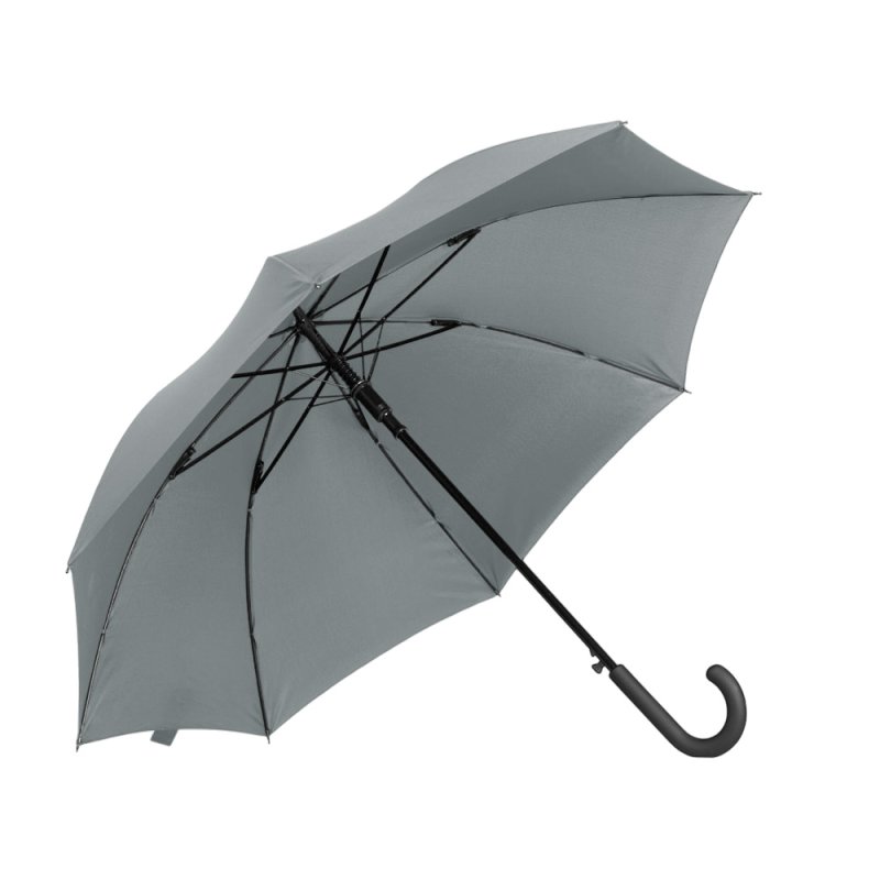 Купол зонта-трости выполнен из переработанного пластика. На ручке зонта расположена кнопка автоматического открытия. Гибкие спицы из стекловолокна делают зонт стойким к порывам ветра. Удобная ручка софт тач. Фиксирующая купол застежка на липучке шириной 3 см - дополнительная опция для нанесения вашего логотипа.