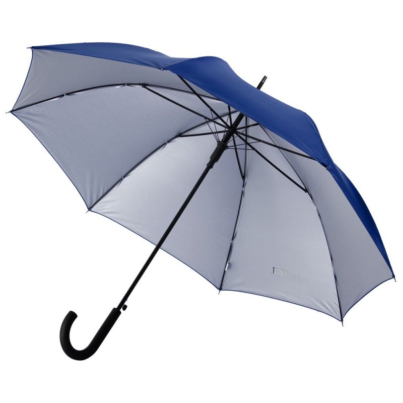 Легкий зонт-трость классической формы, который выглядит нескучно благодаря современным деталям исполнения — серебристому покрытию на внутренней части купола и мягкой прорезиненной ручке.