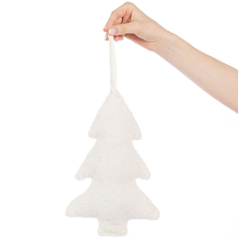 Внутри мягкой елочки находится миниатюрная гирлянда с теплым светом. Работает от 2 батареек типа CR2032 (в комплект не входят).