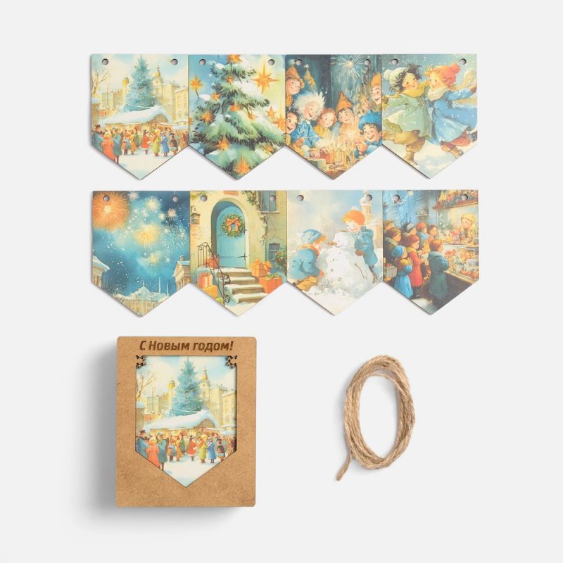 Очаровательная гирлянда из деревянных флажков с винтажными рождественскими иллюстрациями создаст уютную праздничную атмосферу дома или в офисе. Каждый флажок украшен теплыми душевными изображениями, будто сошедшими со старинных открыток. Они с легкостью перенесут в мир новогодних сказок и детских фантазий — туда, где и хочется оказаться в самое волшебное время года!