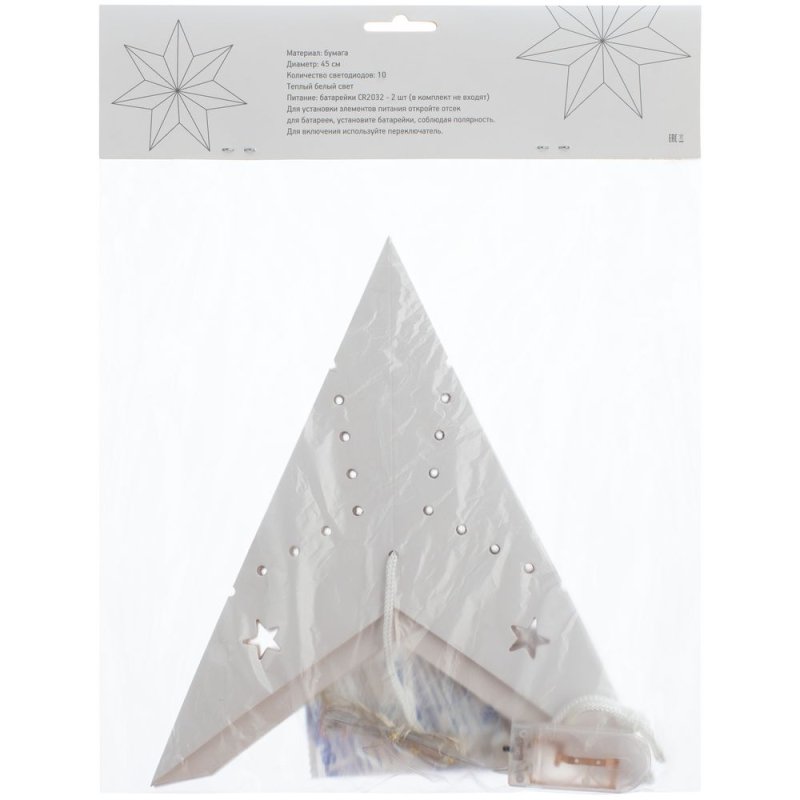 Внутри миниатюрная гирлянда с 10 лампочками с теплым светом. Работает от 2 батареек типа CR2032 (в комплект не входят).
