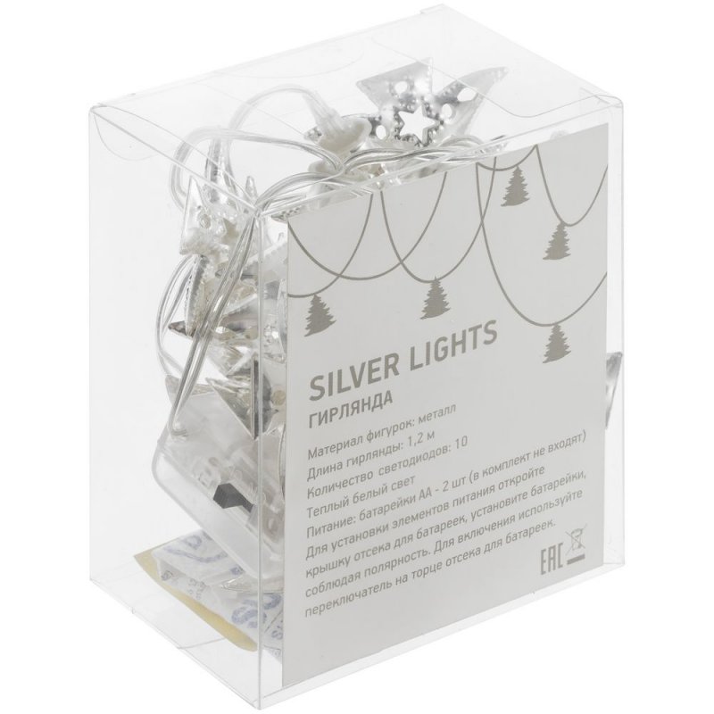 10 лампочек с теплым светом. Работает от 2 батареек АА (в комплект не входят).