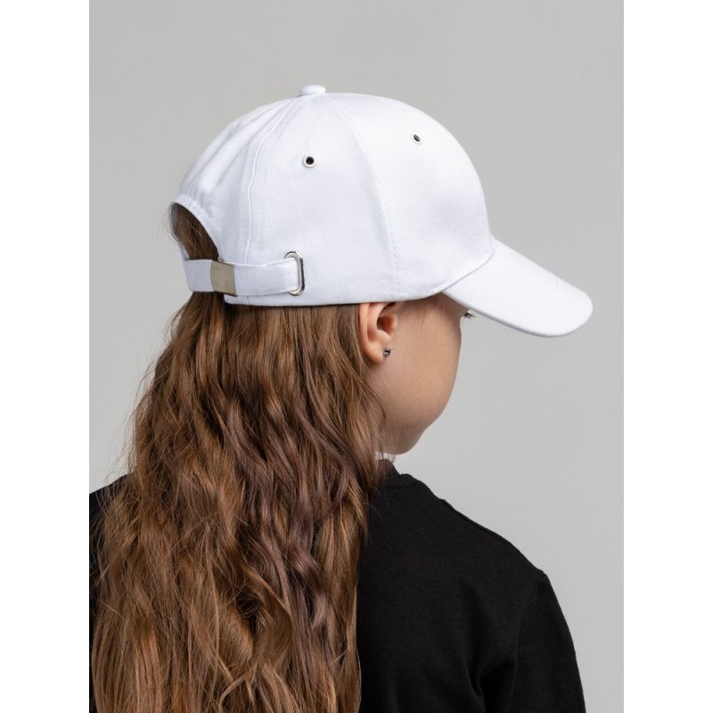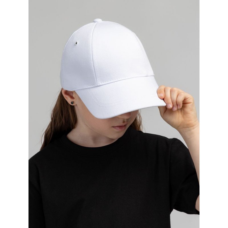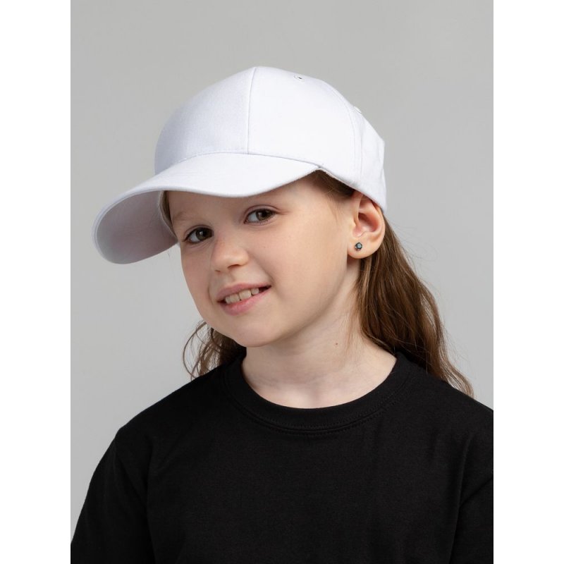 Детская модель с шестью клиньями без шва на лбу. Металлические люверсы покрашены в тон изделия. Сзади металлическая застежка для регулировки размера.