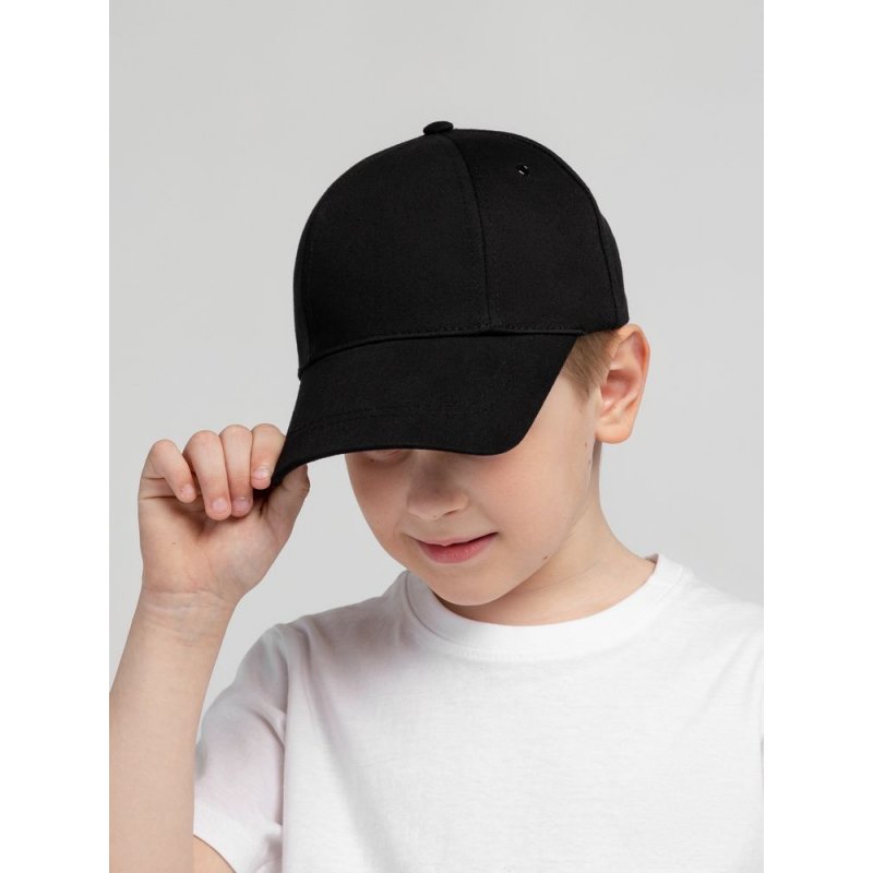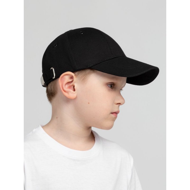 Детская модель с шестью клиньями без шва на лбу. Металлические люверсы покрашены в тон изделия. Сзади металлическая застежка для регулировки размера.
