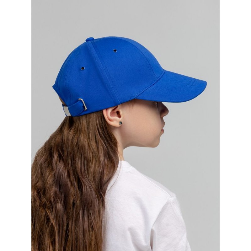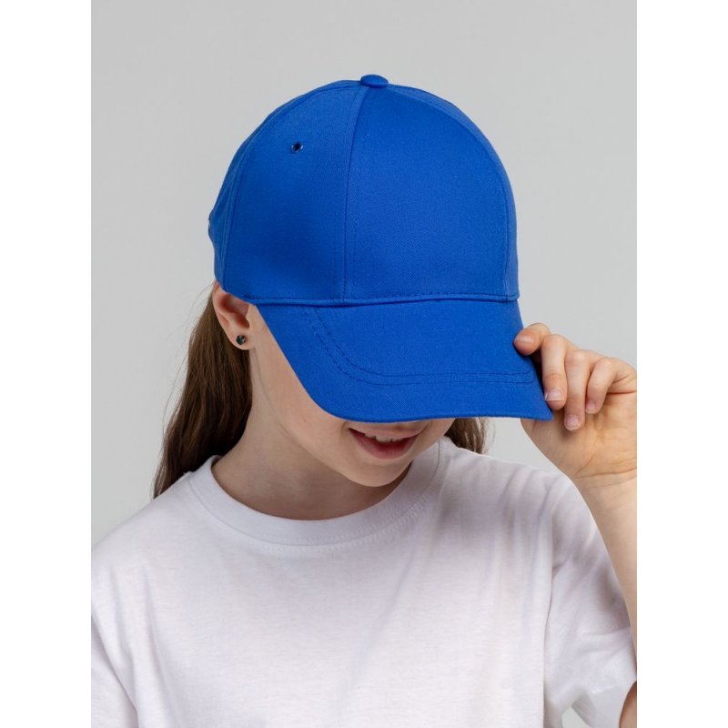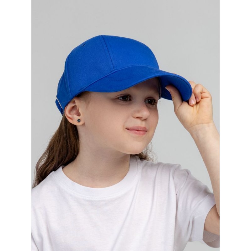 Детская модель с шестью клиньями без шва на лбу. Металлические люверсы покрашены в тон изделия. Сзади металлическая застежка для регулировки размера.