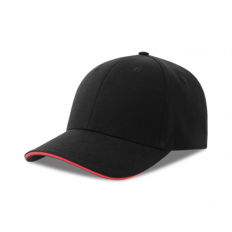 Цвет бейсболки близкий к Pantone Black 6 С; цвет канта близкий к Pantone200 C. 58,5 см - средний размер, с помощью застёжки его можно увеличить или уменьшить до необходимого.