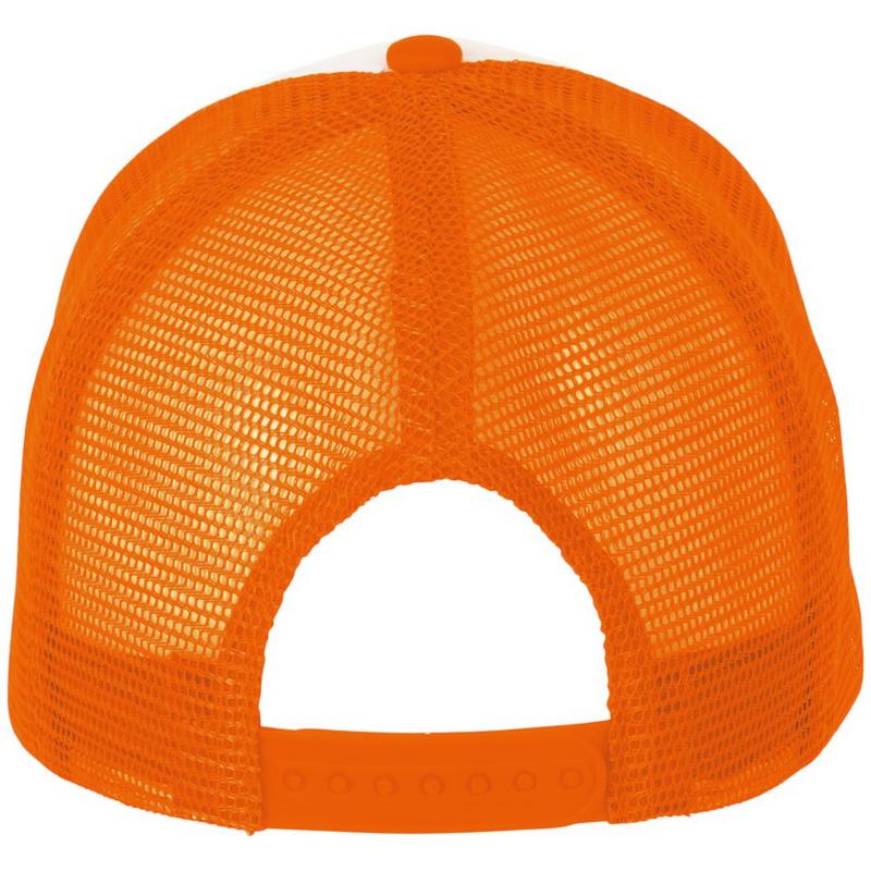 Бейсболка с 5 клиньями из сетки. Поролон в переднем клине (5 мм) и козырьке (3 мм). Регулируемая пластиковая застежка.