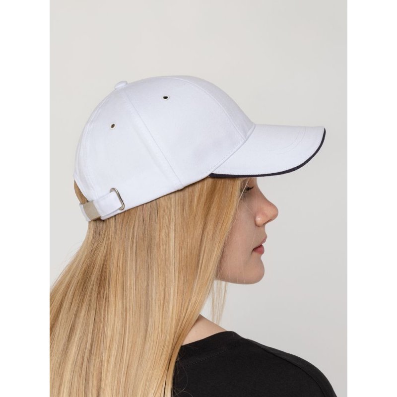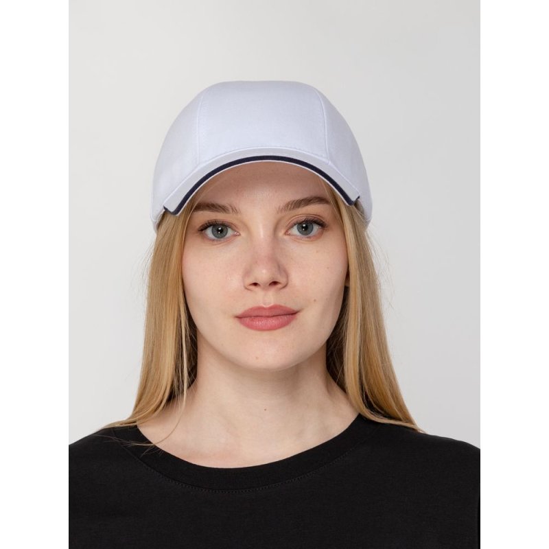 Удобная модель с шестью клиньями без шва на лбу. Козырек-сэндвич с контрастной вставкой. Металлические люверсы покрашены в тон изделия — чтобы ничего не отвлекало внимание от вашего логотипа. Сзади металлическая застежка для регулировки размера.