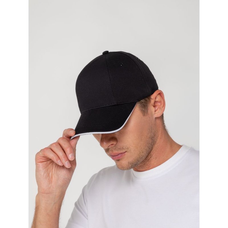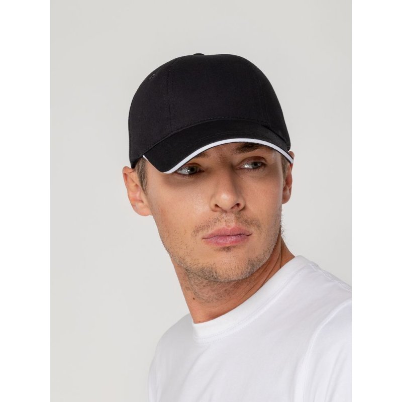 Удобная модель с шестью клиньями без шва на лбу. Козырек-сэндвич с контрастной вставкой. Металлические люверсы покрашены в тон изделия — чтобы ничего не отвлекало внимание от вашего логотипа. Сзади металлическая застежка для регулировки размера.
