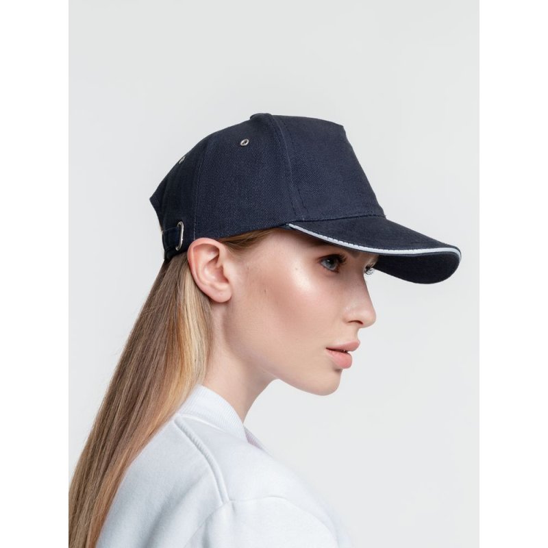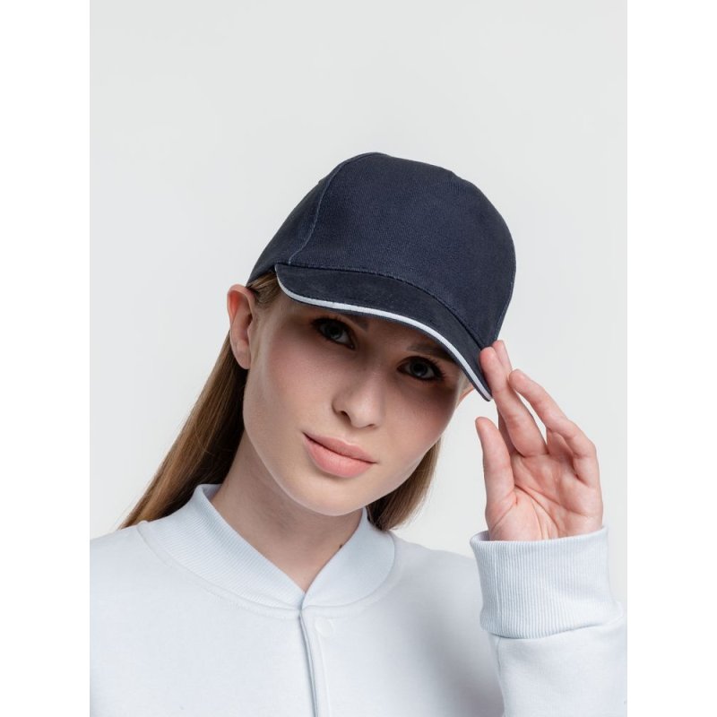 Популярная модель с 5 клиньями без лобового шва выполнена из плотного хлопка. Козырек-сэндвич с контрастной вставкой. Регулируемая металлическая застежка и вентиляционные отверстия с люверсами обеспечивают оптимальную посадку и комфорт в носке.