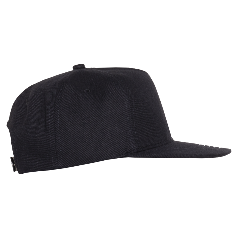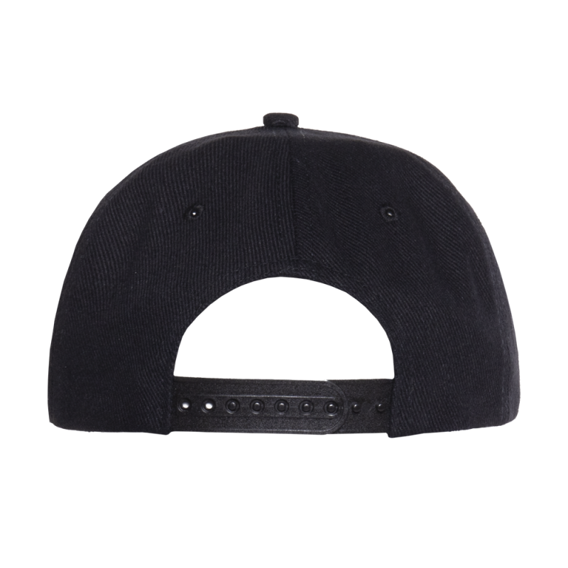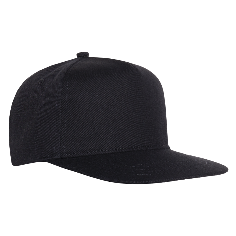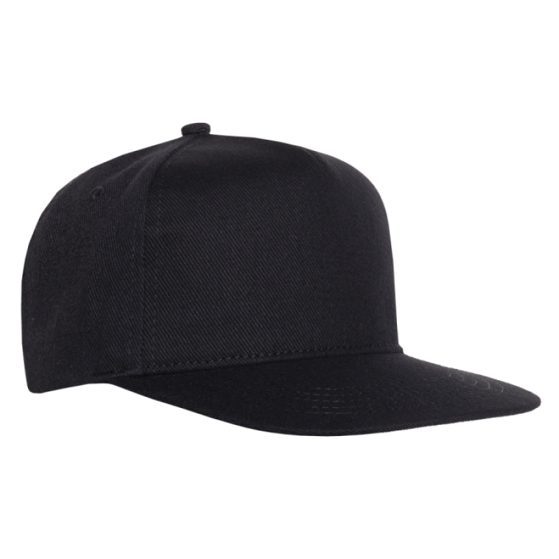 Бейсболка-пятиклинка с прямым жестким козырьком и пластиковой регулируемой застежкой.