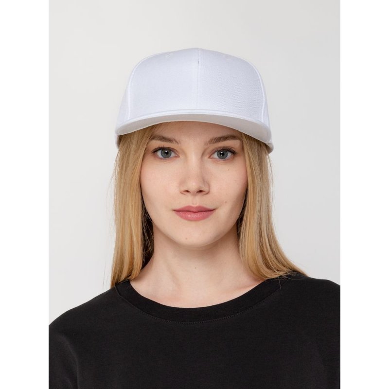 Бейсболка с широким прямым козырьком из плотного фактурного акрила отлично держит форму и не выцветает. Модель с шестью клиньями со швом на лбу и обшивными люверсами. Размер регулируется с помощью пластиковой застежки.