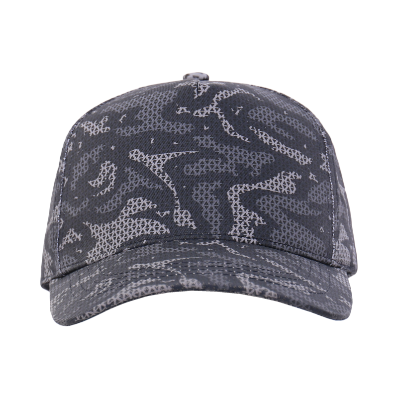 Бейсболка-пятиклинка без лобового шва с изогнутым жестким козырьком. Посадка регулируется ремешком на металлической застежке.