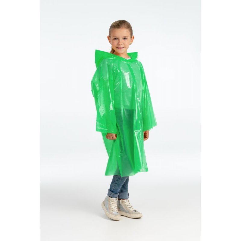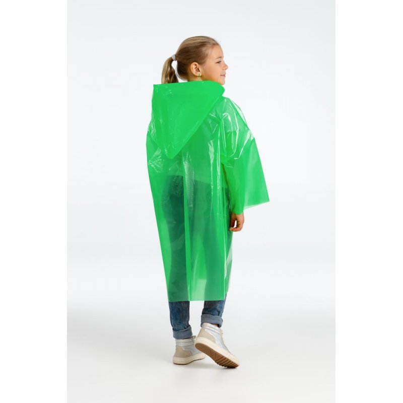 Дождевик-плащ с капюшоном и длинным рукавом из полиэтилена высокого давления (ПВД). Застегивается на липучку.