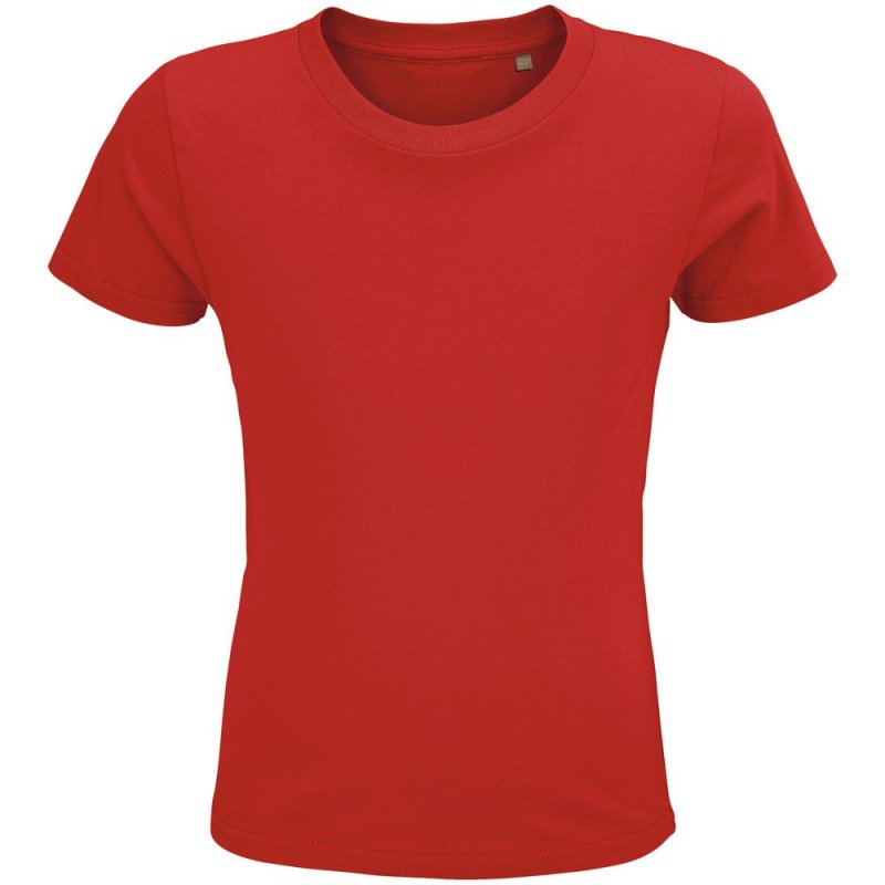 Детская кроеная облегающая футболка из органического хлопка с круглым вырезом.