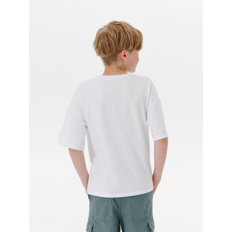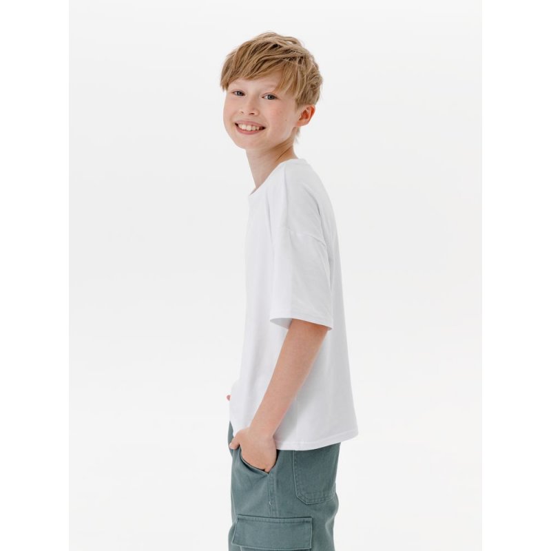 Детская футболка оверсайз из гребенного хлопка с эластаном не стесняет движений и создает модный силуэт.