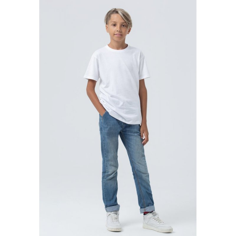 Классическая кроеная футболка с боковыми швами и укрепляющей тесьмой по вороту. Край ворота в резинку с эластаном.