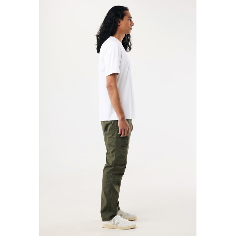 Футболка современного кроя выполнена из 100% хлопка, который на 50% состоит из переработанного и на 50% из органического. Круглый вырез и плотная ткань делают эту модель универсальной.