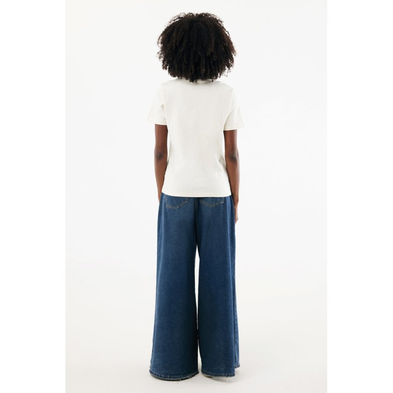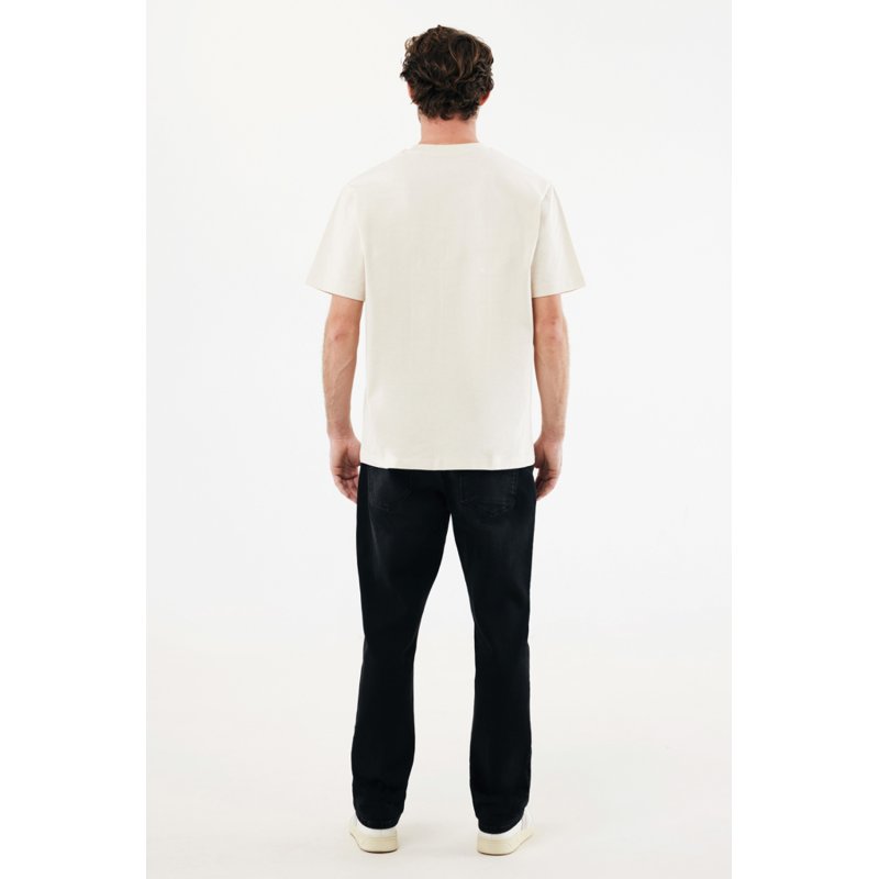 Футболка современного кроя выполнена из 100% хлопка, который на 50% состоит из переработанного и на 50% из органического. Круглый вырез и плотная ткань делают эту модель универсальной.