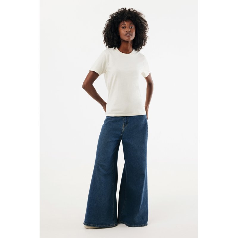 Футболка современного кроя выполнена из 100% хлопка, который на 50% состоит из переработанного и на 50% из органического. Круглый вырез и плотная ткань делают эту модель универсальной.