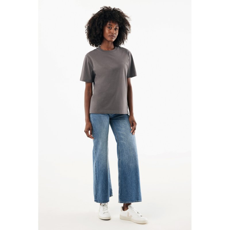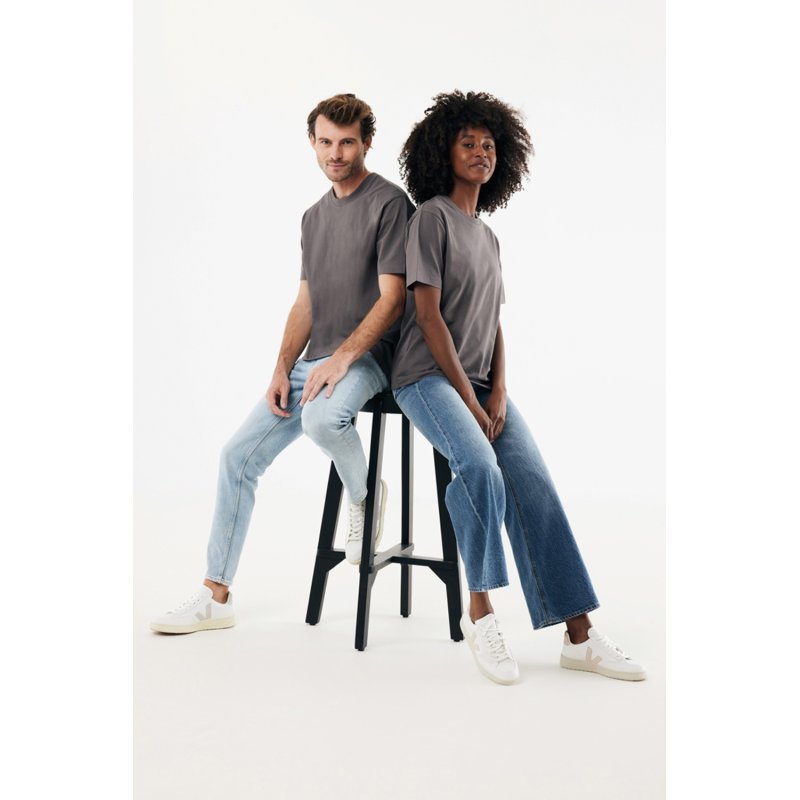 Футболка современного кроя выполнена из 100% хлопка, который на 50% состоит из переработанного и на 50% из органического. Круглый вырез и плотная ткань делают эту модель универсальной.