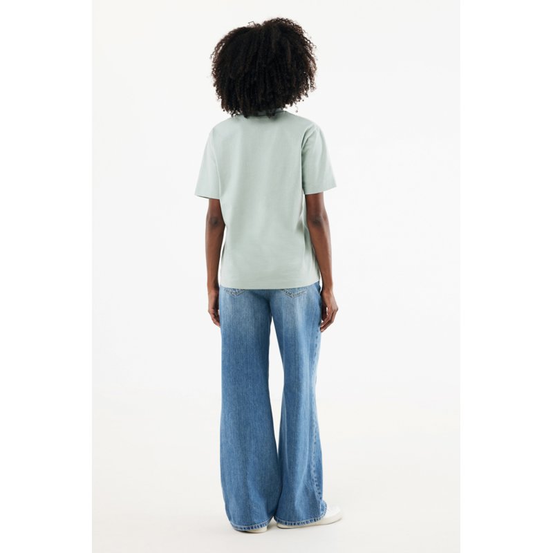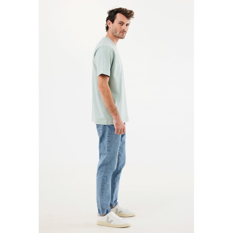 Футболка современного кроя выполнена из 100% хлопка, который на 50% состоит из переработанного и на 50% из органического. Круглый вырез и плотная ткань делают эту модель универсальной.