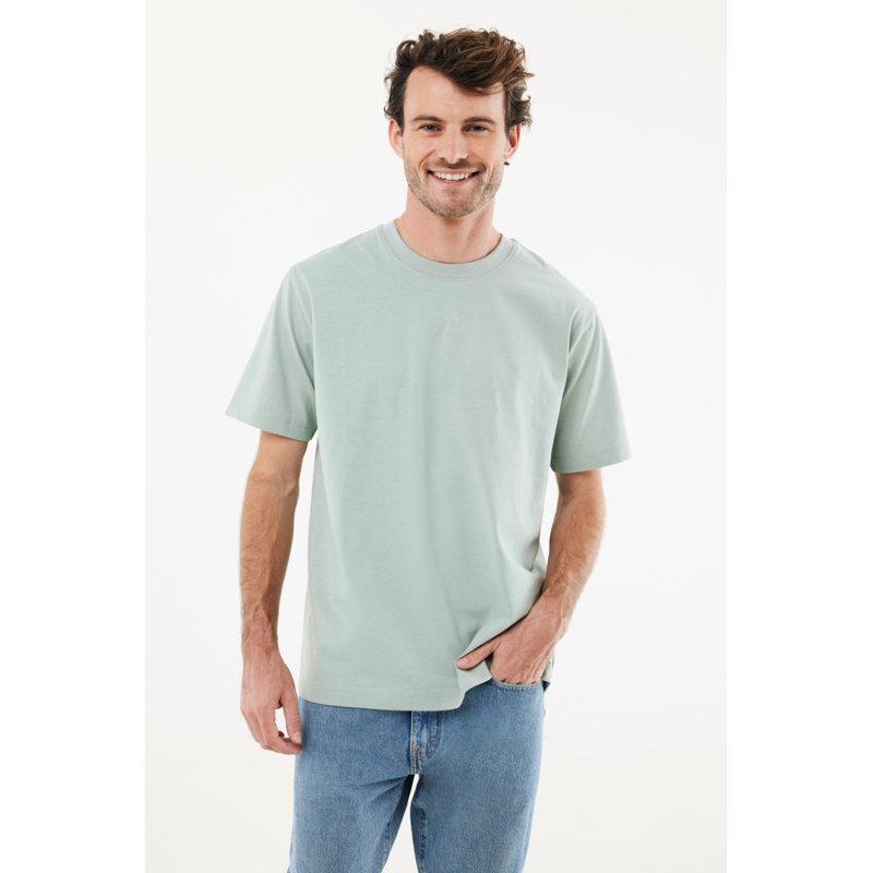 Футболка современного кроя выполнена из 100% хлопка, который на 50% состоит из переработанного и на 50% из органического. Круглый вырез и плотная ткань делают эту модель универсальной.