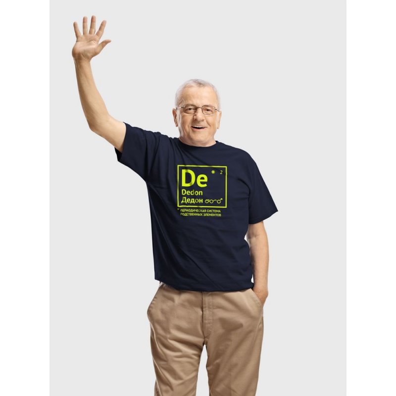 «Периодическая система родственных элементов» наглядно демонстрирует все многообразие семейных связей.Модель без боковых швов, стиль классический, унисекс.