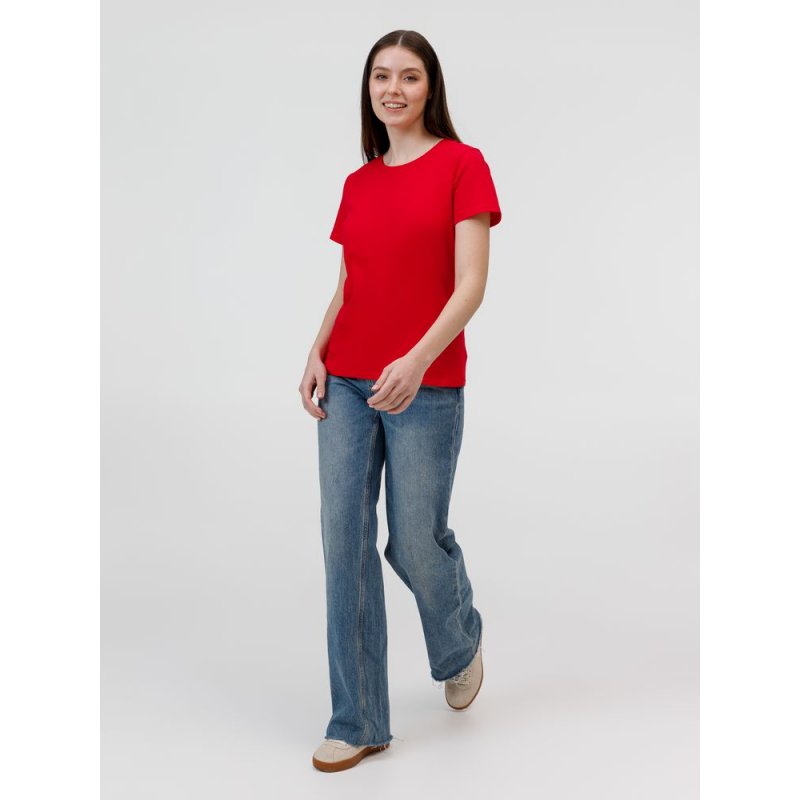 Кроеная женская футболка приталенного силуэта с круглым воротом.