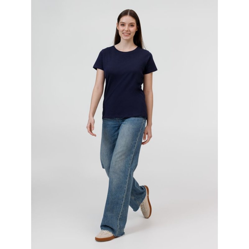 Кроеная женская футболка приталенного силуэта с круглым воротом.