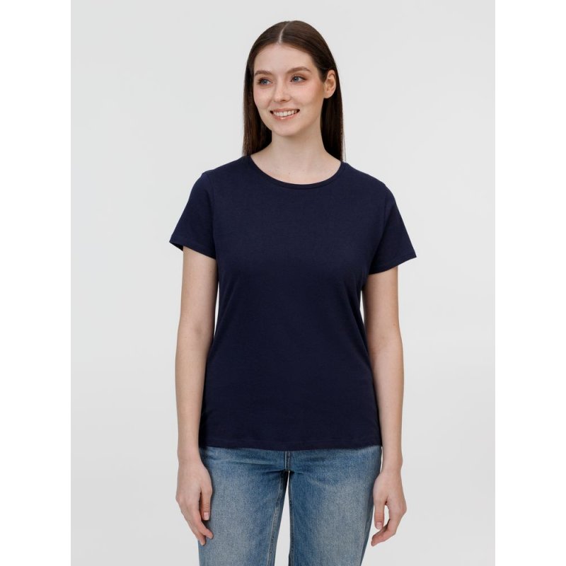 Кроеная женская футболка приталенного силуэта с круглым воротом.