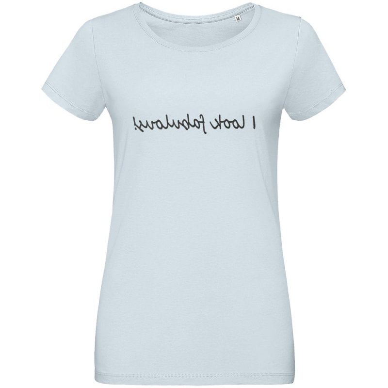 Фраза «I look fabulous» (Я выгляжу великолепно) отзеркалена, так что для окружающих она выглядит абракадаброй. Но стоит обладательнице футболки подойти к зеркалу, она увидит правильное написание. Эта футболка поднимет настроение и уровень самооценки! Надо лишь чаще подходить к зеркалу.