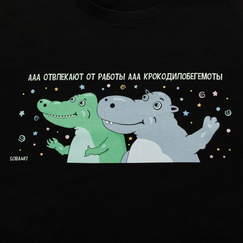 Принт «Крокодилобегемоты» создан для того, чтобы переживать такие моменты было проще и веселее, а всевозможные рабочие проблемы превращались во внутрикорпоративную шутку.