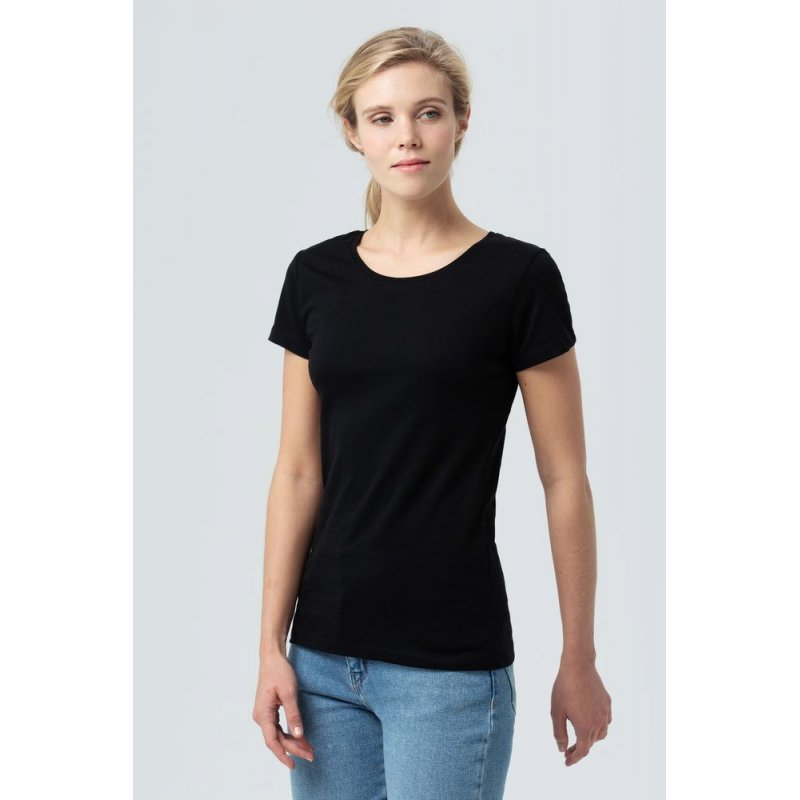 Женская облегающая футболка из джерси c боковыми швами и круглым вырезом.