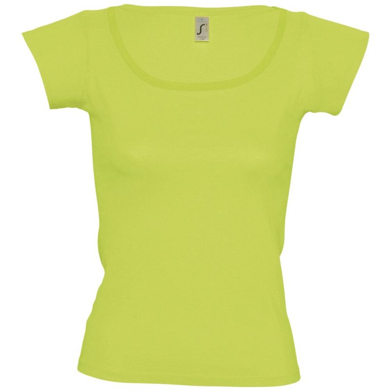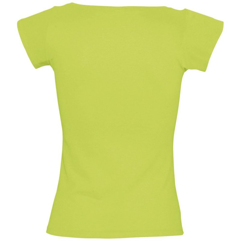 Футболка женственного приталенного силуэта с американской проймой и глубоким вырезом, отделанным обтачкой из джерси. Двойная прострочка на вороте спереди, на рукавах и по низу.