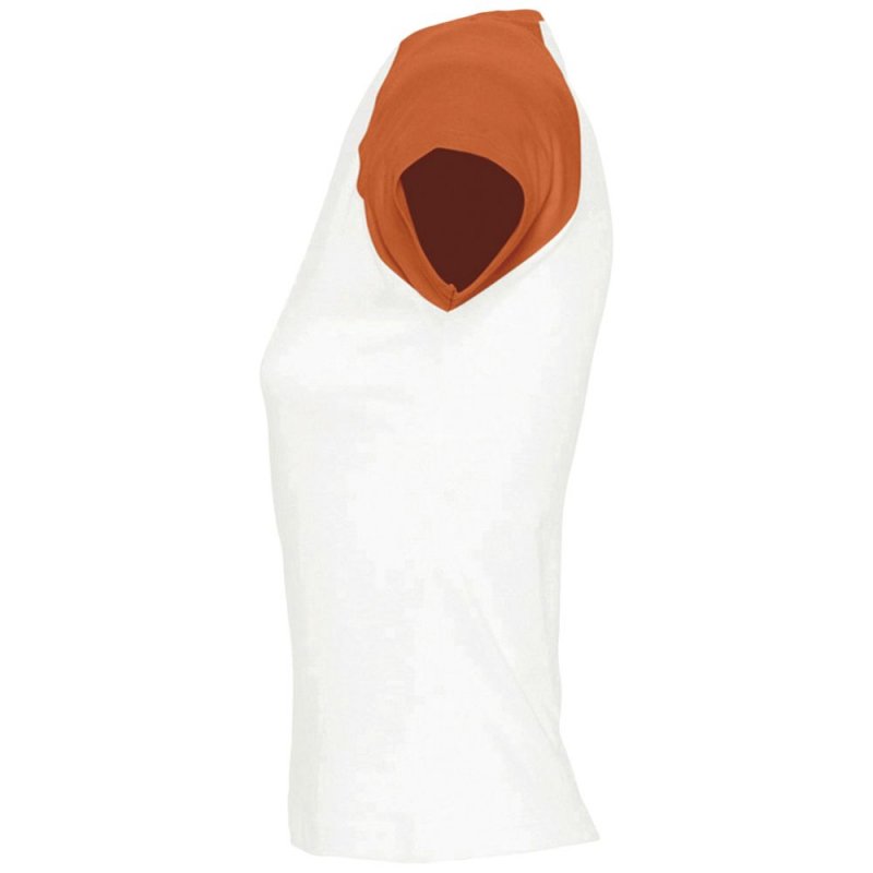 Кроенная футболка с рукавом реглан. Укрепляющая тесьма по вороту, край круглого ворота связан резинкой с эластаном.