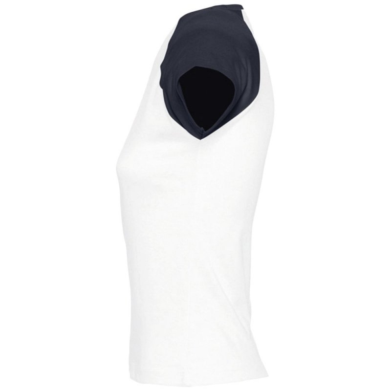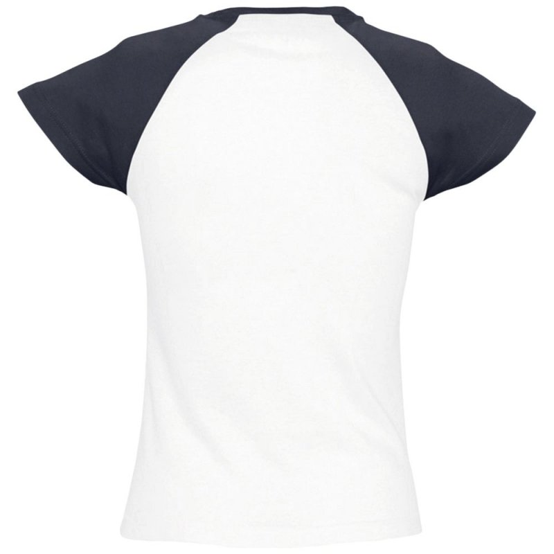 Кроенная футболка с рукавом реглан. Укрепляющая тесьма по вороту, край круглого ворота связан резинкой с эластаном.