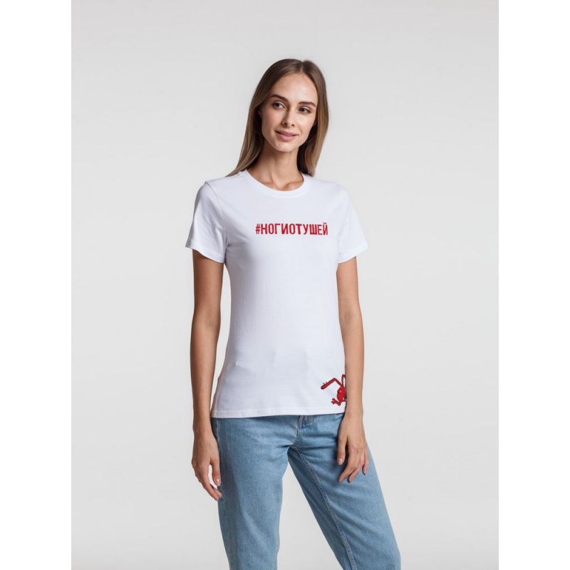Перед вами поучительная история персонажа, который был несколько недальновиден и теперь у него буквально ноги от ушей! Эта приятно прилегающая к телу футболка предупреждает: в любой непонятной ситуации… всегда старайтесь разобраться в ситуации!Кроеная женская футболка с круглым воротом-резинкой 1x1.