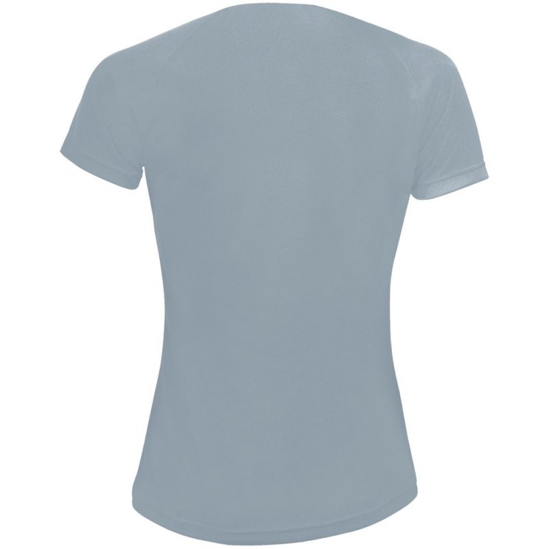 Футболка из спортивной сетки с рукавом реглан. Низ изделия и низ рукавов с двойной отстрочкой.