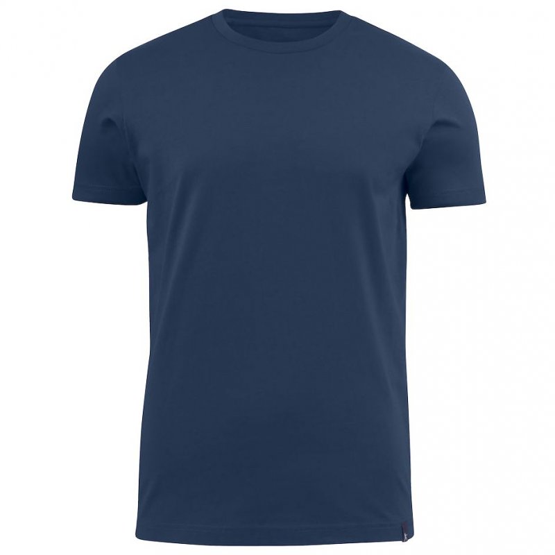 Мужская футболка с круглым вырезом. Двухслойная резинка предохраняет воротник от деформации после стирки.