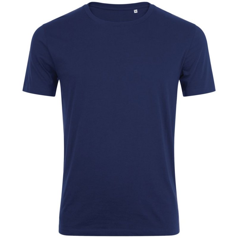 Кроеная мужская футболка с круглой горловиной. Ворот в тонкую резинку с укрепляющей тесьмой. Облегающий силуэт.