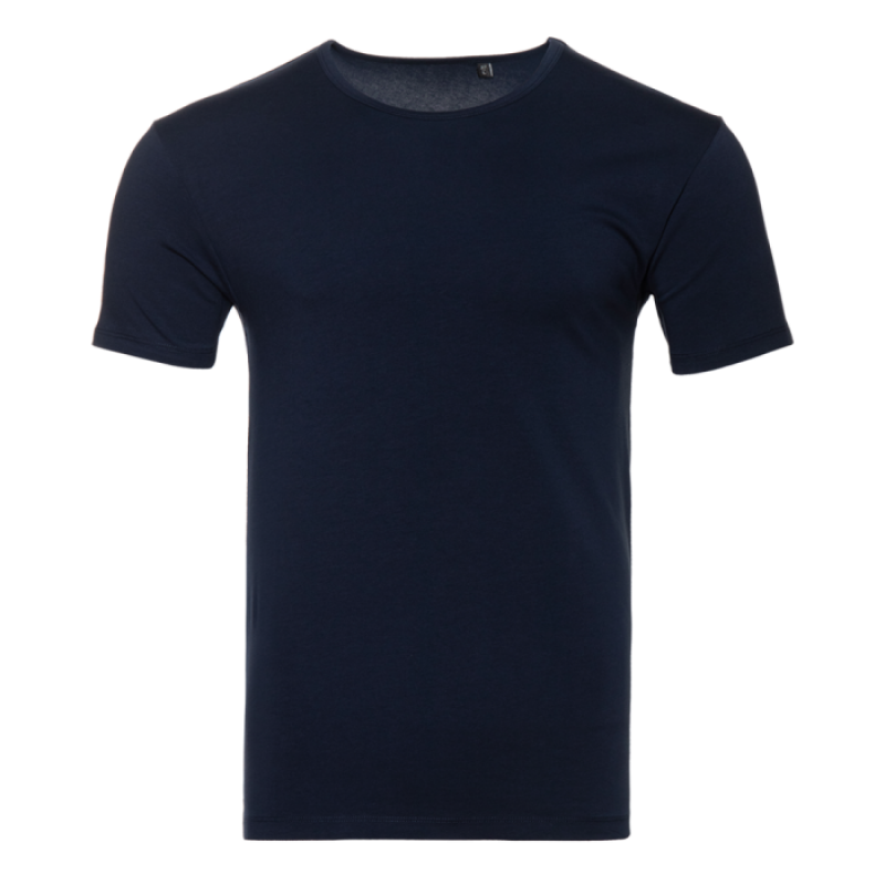 Мужская футболка облегающего силуэта с округлым вырезом и втачным рукавом.
