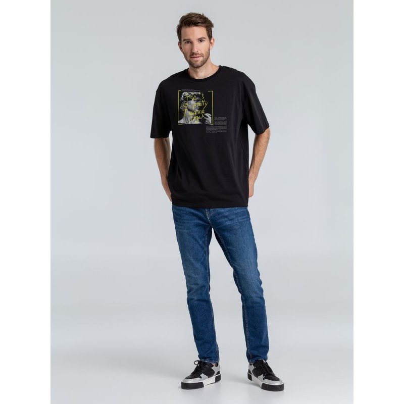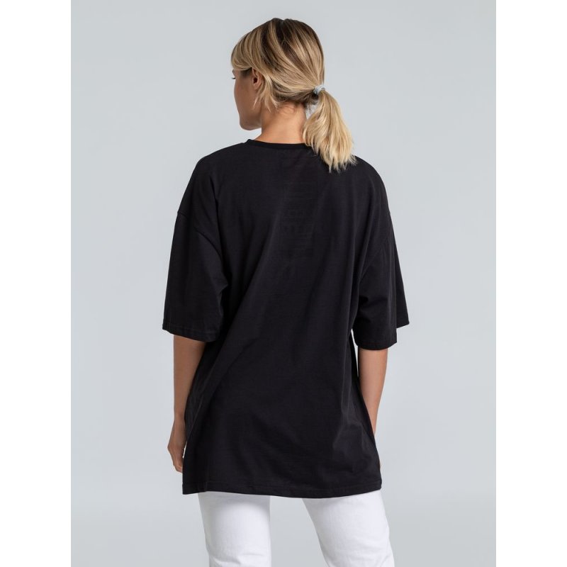 Принт с информацией о бренде и инструкцией по уходу за изделием на изнаночной стороне футболки.