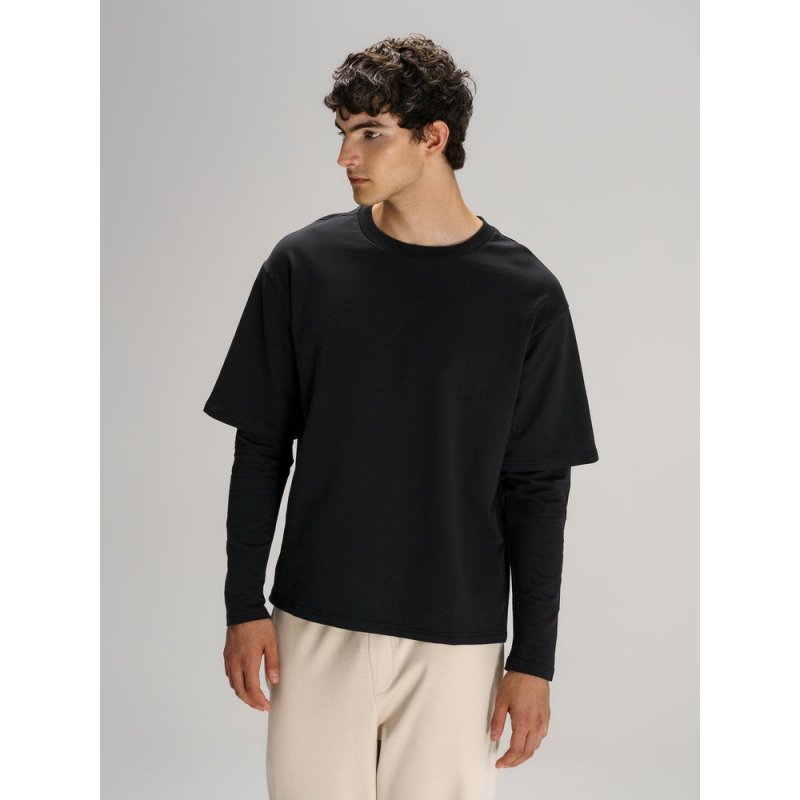 Футболка оверсайз в трендовом исполнении double sleeve (с двойным рукавом) — отличный вариант для создания повседневного образа. Легкая дышащая хлопковая ткань с гладкой трикотажной фактурой приятна к телу, а расслабленный оверсайз силуэт делает футболку Kosmos идеальной для любых жизненных маневров.